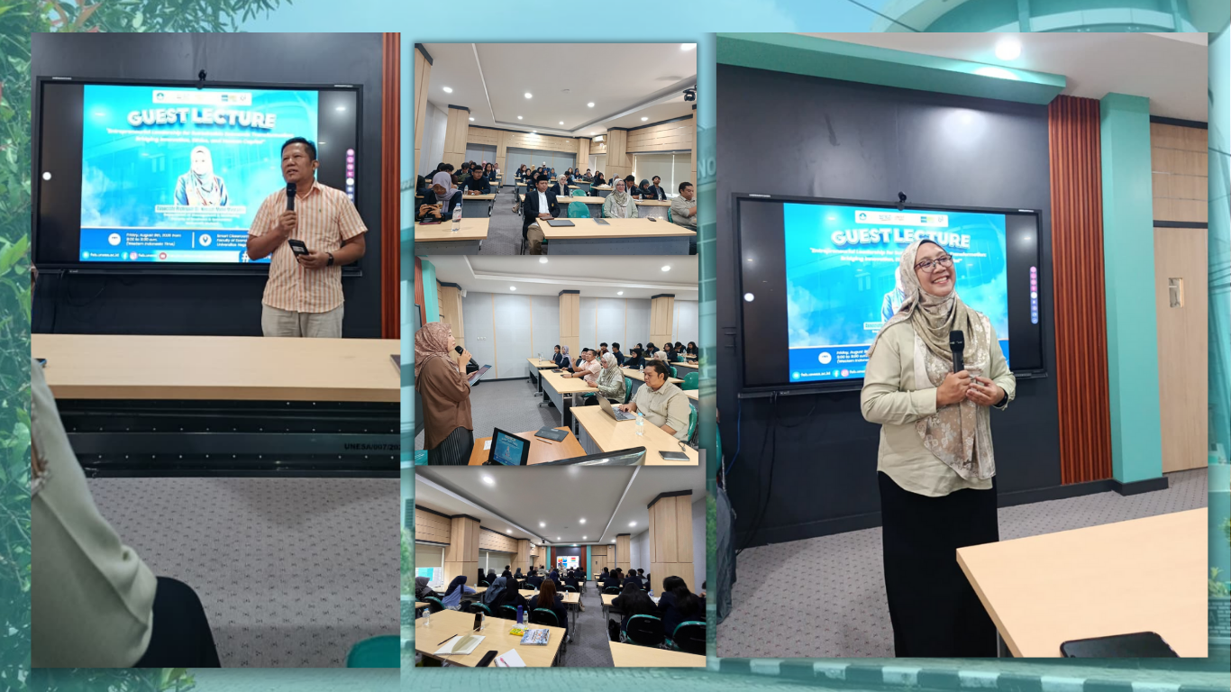 Held at the Smart Classroom Building G3, the Guest Lecture carried the theme “Entrepreneurial Leadership for Sustainable Economic Transformation: Bridging Innovation, Ethics, and Human Capital.” This event was part of FEB UNESA’s strategic commitment to promoting Impactful Campus (Kampus Berdampak) values by enhancing international academic collaboration and global learning exposure for students.