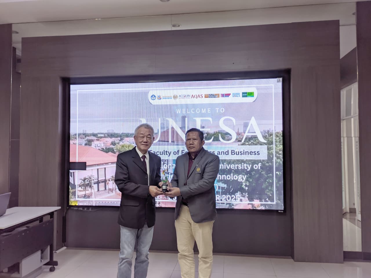 Dekan Fakultas Ekonomika dan Bisnis UNESA, dalam sambutannya menekankan bahwa kerja sama ini merupakan tonggak penting dalam perjalanan internasionalisasi FEB UNESA. Beliau menyampaikan bahwa penyelarasan program ini dengan standar lembaga akreditasi internasional menandai komitmen fakultas dalam mengembangkan ekosistem pembelajaran yang kompetitif, setara dengan perguruan tinggi bereputasi global. Ia menegaskan bahwa mahasiswa FEB UNESA tidak hanya dituntut memahami kompetensi bidang ekonomi dan bisnis, tetapi juga memiliki pengalaman lintas budaya, kemampuan adaptasi, serta perspektif internasional yang berharga untuk menghadapi dinamika global.